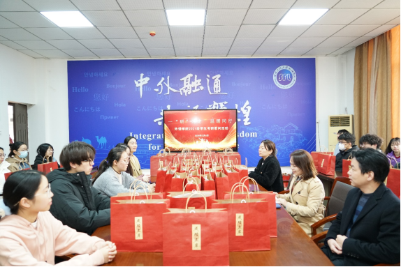 (通讯员 周贝)12 月 4 日上午,在考研即将来临之际,外语学院于文科楼 308 会议室举办了一场温暖人心的 2021 级学生考研慰问活动,为即将踏上考场的学子们加油鼓劲、舒缓压力。外语学院党委书记王火利、院长陈明芳出席活动,学院党委副书记丁春毅主持,2021 级辅导员和考研学生参加了此次活动。