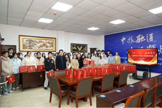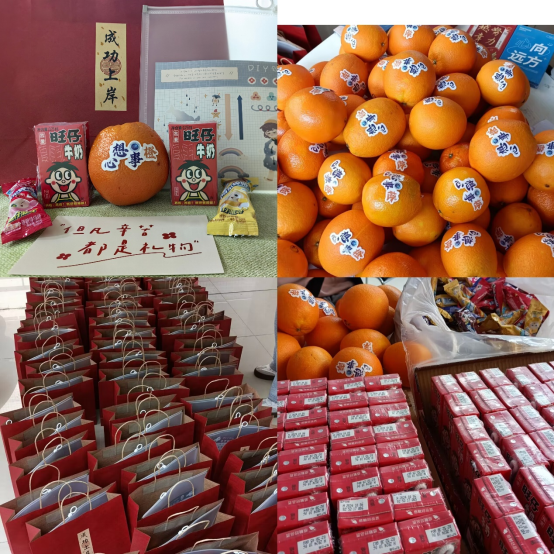 在慰问环节,学院精心为考研学子们准备了寓意满满的慰问物品。橙子,寓意梦想“橙”真,祝愿他们的考研梦想都能够成真;旺仔牛奶,代表好运旺旺,希望同学们在考试中好运连连;棒棒糖,象征 金“棒”题名,寄托着学院对同学们能够金榜题名的美好期许;文件袋,寓意学院将陪伴同学们进入考场,见证他们为梦想而战的重要时刻。这些小小的礼物饱含着学院对考研学子深深的祝福与殷切的期望,让同学们在寒冬中感受到了浓浓的温暖与关怀。
