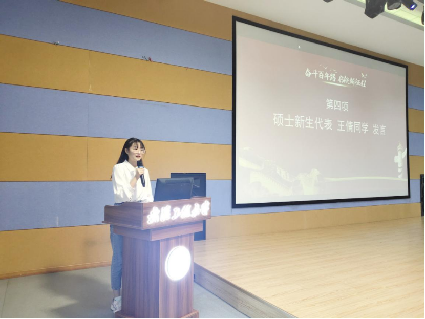 硕士新生代表王倩同学在发言中分享了自己对研究生生活的认识,并对新生适应接下来的研究生生活提出建议,希望在一个崭新的起点上,大家都能在武汉工程大学拥有充实无悔的生活。