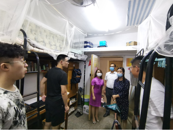 (通讯员顾泽文)为做好学校新冠肺炎防控和秋季学期开学准备工作,切实维护师生的身体健康和生命安全。9月1日下午,外语学院党委书记陆新、院长陈明芳、党委副书记徐思思深入学生宿舍检查指导疫情防控工作,班主任段燕、黎立夏、阎莉、陈丽珠、学工办辅导员顾泽文陪同检查。
