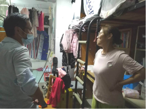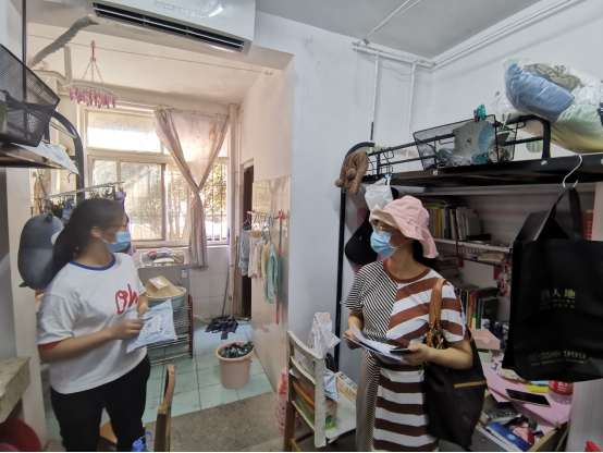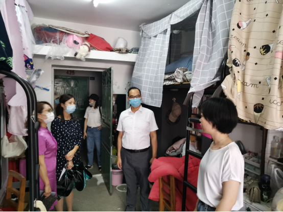 陆新书记对泰塑公寓7栋、8栋宿舍楼外来人员登记记录、宿舍楼消毒记录等一一进行了查阅,向楼栋管理员问询宿舍楼的卫生保洁和消毒通风情况,热水使用情况、体温测量情况等。陆新指出,学生返校期间,辅导员、班主任要“不忘初心、牢记使命”,下沉宿舍,关怀学生,积极帮助学生搬运行李、宿舍打扫、晾晒被褥,了解返校学生切实需求并予以解决。
