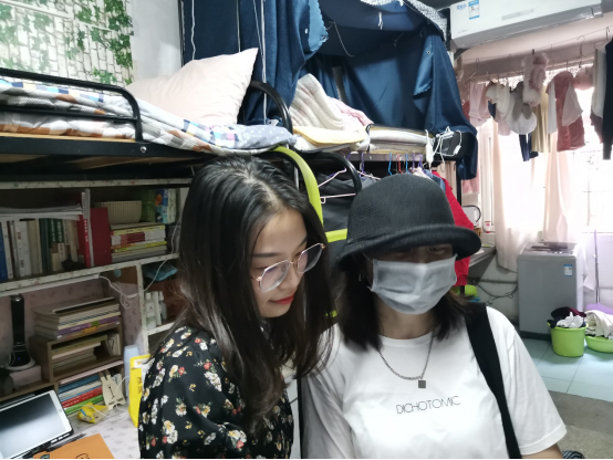 2017级汉语国际教育1班班主任黎立夏老师在走访宿舍