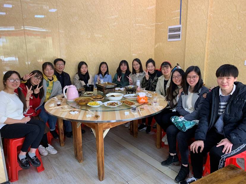 会后,教师代表杨建兵、别尽秋、杨志、金海和往届毕业生共进午餐,同学们感谢学院周到温馨的安排。他们回忆了在学校的点点滴滴、大学生活的欢声笑语、学习中的痛苦和喜悦,还有各位亲切却又严格的老师们。3月29-31日,“新时代跨学科复合型英语人才培养模式国际学术研讨会”将在我校举行,“E+”模式也成为学生讨论的焦点。现于华南理工大学攻读研究生的14级英语+材料化学专业陈炜炽同学表示:“跨学科的教育方式让人痛苦了四年,但对自己研究生学习非常有帮助”。针对“E+”学习压力的问题,现就读于华中农业大学的14级英语+化工专业罗灵子同学及陈瑶等同学均表示,在校学习期间,压力可能会大一些,但毕业后回头看,压力激发了动力,双倍的付出得到了双倍的回报。他们还根据自己大学四年的学习体会,对学院的专业发展、课程设置等方面提出了许多中肯的建议。