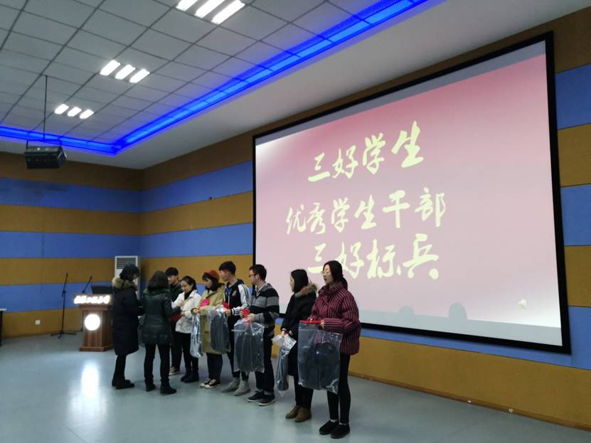 其次表彰了2017至2018学年院三好学生、优秀班干部、标兵、晨读先进个人及集体,由杨建兵院长宣读名单并颁奖。