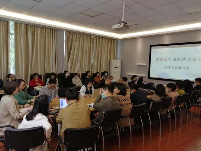 为推动一流本科课程建设,2021年4月22日下午,外语学院英语专业教研室在文科楼119召开课程教学团队建设研讨会,学院陈明芳院长、别尽秋副院长、邓军涛院长助理及英语专业教研室全体教师参加了本次研讨会。