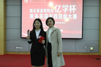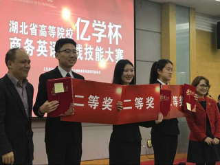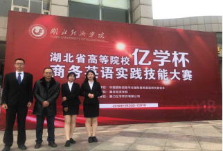 (通讯员 王绘景)2018年11月30日至12月1日,湖北省高等院校“亿学杯”商务英语实践技能大赛在湖北经济学院举行。我校“英语+市场营销”专业2016级邓傲芳、朱勇同学与2017级王绘景、叶亦翔同学在林云华与王堃老师的指导下,一路过关斩将,获得团队二等奖!王绘景同学被评为全场唯一的优秀选手!此次赛事由中国国际贸易学会国际商务英语研究委员会主办,湖北经济学院承办,厦门亿学软件有限公司协办,中南财经政法大学、华中农业大学等二十所高等院校组队参加了此次比赛。