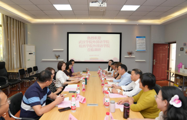 (通讯员 肖洪波)10月11日下午,武汉学院开元(中国)院长陈金平一行4人、皖西学院开元(中国)副院长高瑞阔一行3人来我校外语学院开展调研,重点围绕专业设置、"E+"复合型专业人才培养、教师发展、大学英语公共课教学等方面进行交流,我校外语学院院长陈明芳、院长助理杨志、大学英语教研室主任陈玢、英语专业教研室教师代表程建山、“E+”实验区教务员肖洪波参加调研座谈会,会议由“E+”实验区副主任凃朝莲主持。