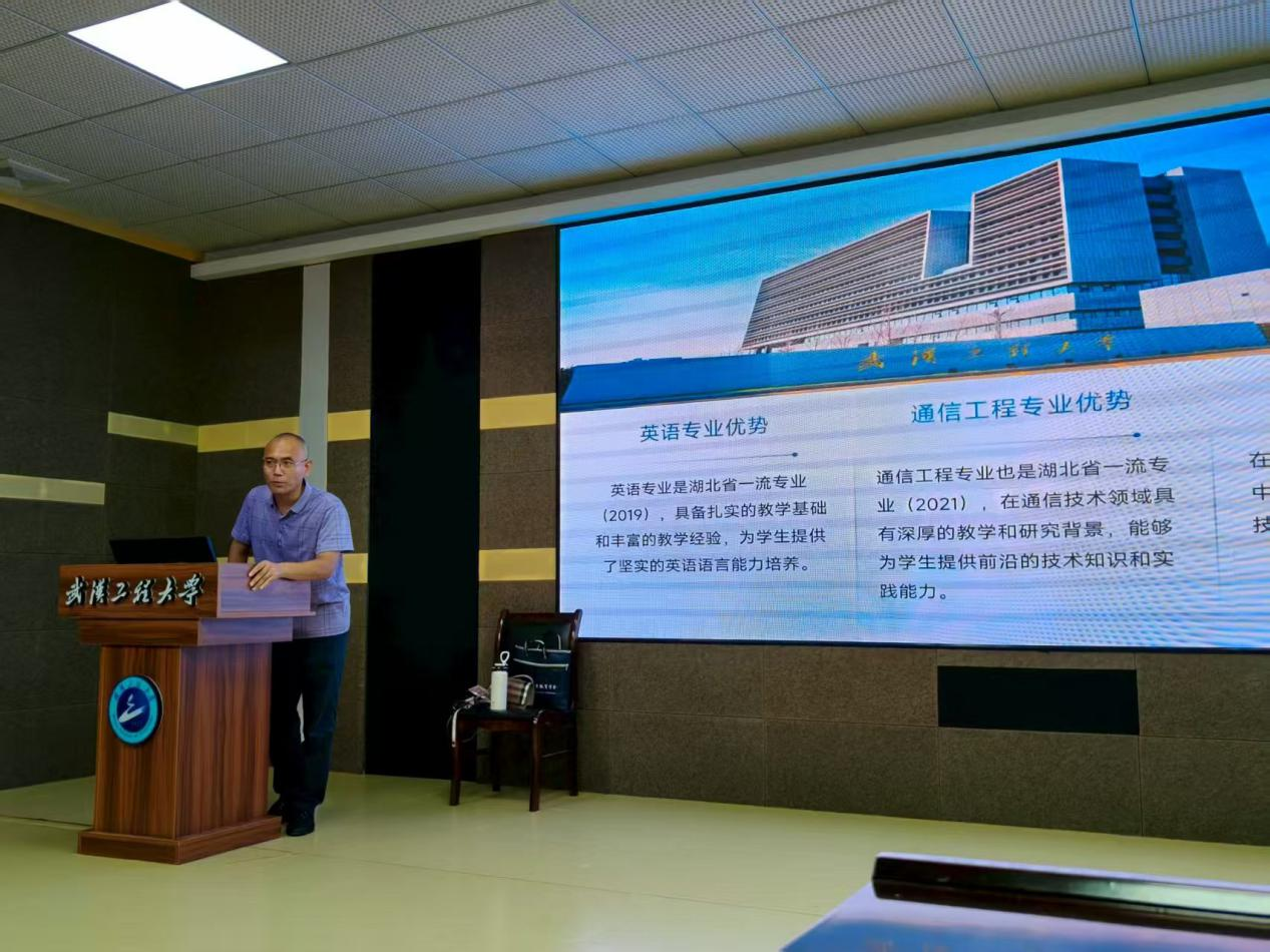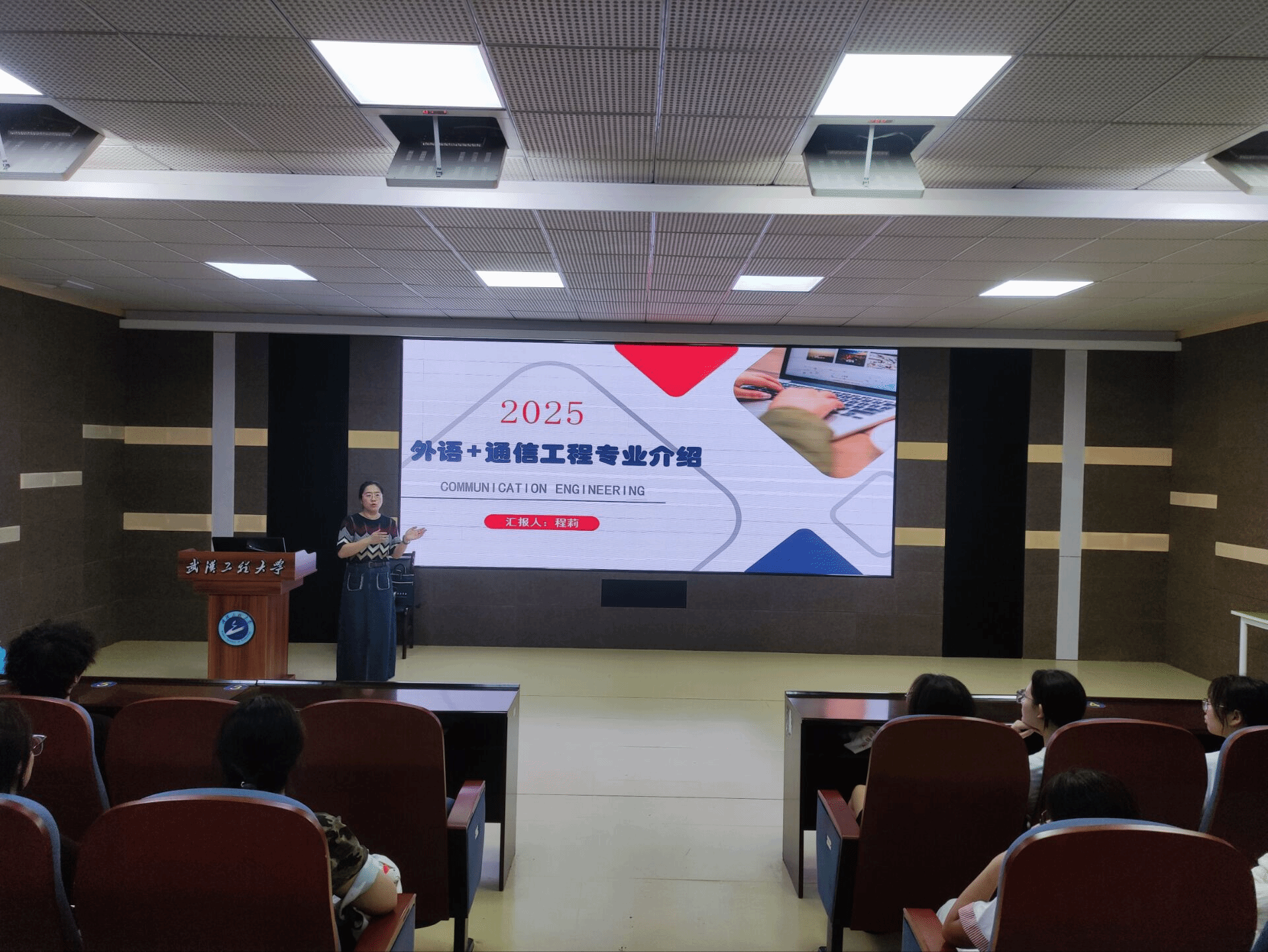 本网讯(通讯员 孙静恩)9月15日下午,武汉工程大学外语学院在文科楼313报告厅举办英语(辅修通信工程)专业2025级新生见面会。本次活动由外语学院张云峰老师、电气信息学院程莉老师共同主讲,为新生们开启了专业认知与成长规划的启蒙之旅。