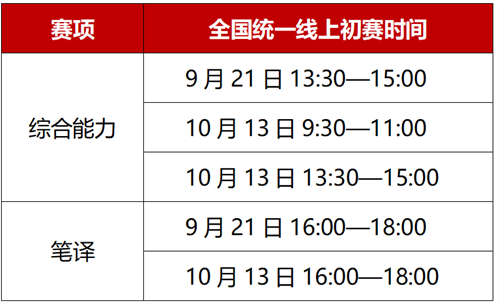 为深入贯彻党的二十大精神,落实立德树人根本任务,纵深推进习近平新时代中国特色社会主义思想进高校、进教材、进课堂(简称“三进”)工作,深化高校外语教育改革、提高外语人才自主培养质量,培养高水平国际传播人才,助力提升我国国际影响力、感召力、塑造力,推进高水平对外开放,促进文明交流互鉴,为构建人类命运共同体积极贡献力量,经研究,湖北省教育厅、中共湖北省委外事工作委员会办公室、湖北省社会科学界联合会决定联合举办2024“外研社·国才杯”“理解当代中国”全国大学生外语能力大赛(湖北赛区)(以下简称大赛)。本赛事为教育部认可的56项全国普通高校大学生竞赛之一,是全国最权威的外语赛事之一,也是学校A类赛事之一。我校定于10月初举办“外研社•国才杯”“理解当代中国”全国大学生外语能力大赛(笔译)校园初赛。现将有关事项通知如下: