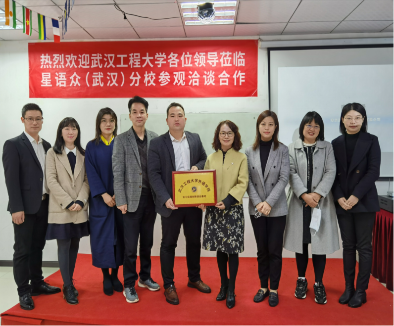2021年10月20日(周三)上午10点,武汉工程大学外语学院各位领导参观并签约实习基地星语众教育武汉分校总部。星语众教育出席人员有执行总裁张方荣、人事经理钟广明、武汉分校校长吴文娟、董事兼市场负责人裴阳君。武汉工程大学出席人员有外语学院党委书记王火利、院长陈明芳、副书记徐思思、副院长别尽秋、英语专业副主任陈丽珠、汉语国际教育实习负责人韦钰、小语种实习负责人刘玮莹。