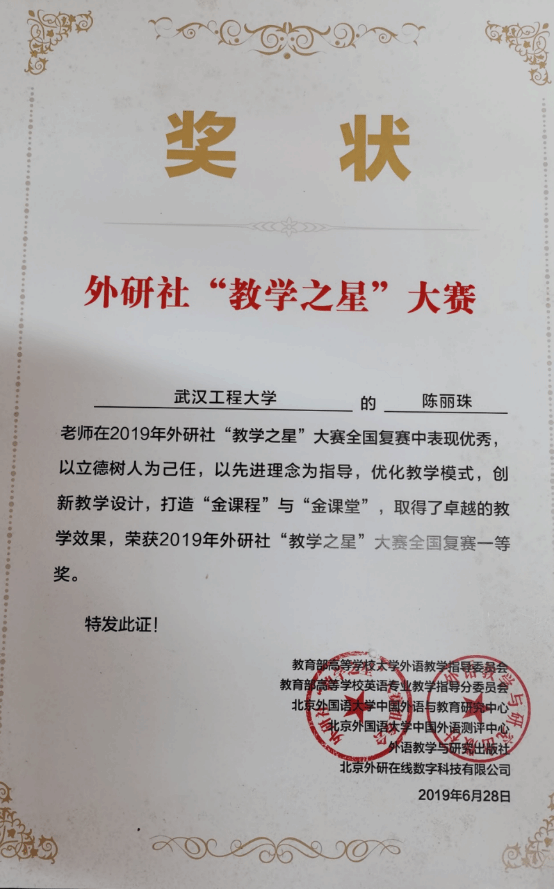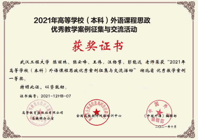 承担课程:《综合英语》、《法律英语听说》、《高级英语》、《语音训练》、《文学翻译》、《外事翻译》等。