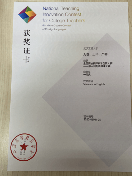 参赛项目:武汉工程大学"青年教师讲课比赛"