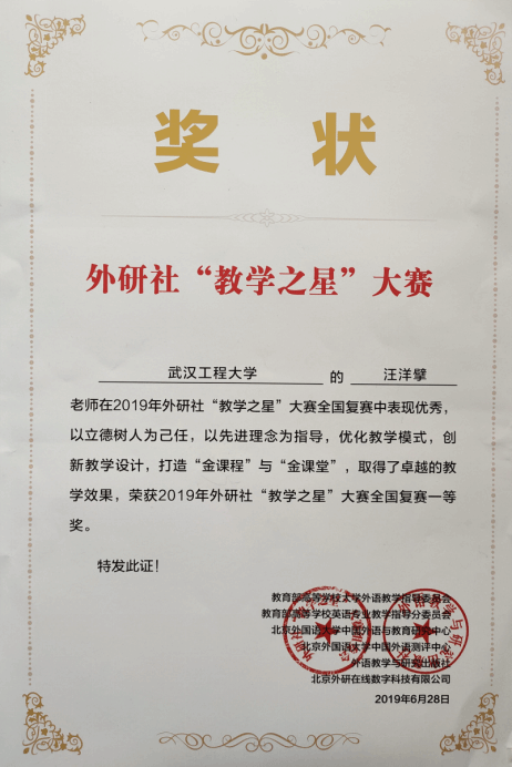 获得奖励:湖北省赛区英语专业组三等奖