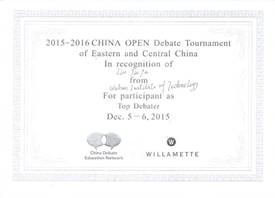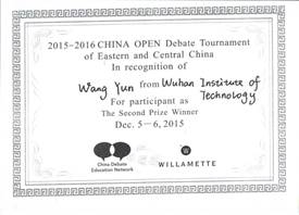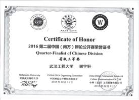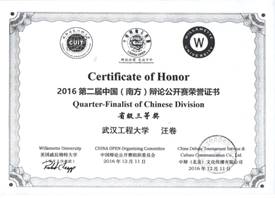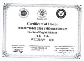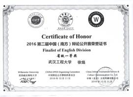 “外研社杯”全国大学生英语辩论赛华中赛区三等奖