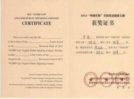 “外研社杯”全国英语演讲大赛湖北赛区一等奖