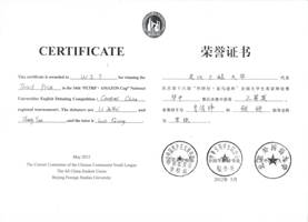 “21世纪杯”全国英语演讲比赛湖北赛区二等奖