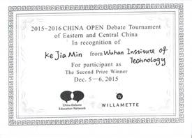 “外研社杯”全国大学生英语辩论赛总决赛三等奖,华中赛区一等奖