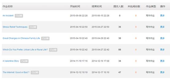 2. 教师利用平台功能拓展教学任务(包括写作,翻译,口语等在线作业),学生完成情况良好。